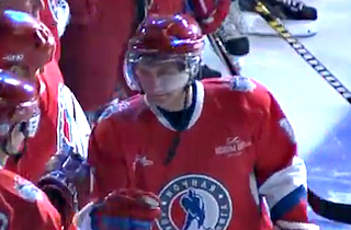 Putin joined the game wearing a red #11 jersey, one of his many athletic exploits that have also included shirtless horseback riding and wrestling bears. The latter, of course, was likely a PR stunt, and the Wall Street Journal implied that his hockey game might have been, too, noting that glowing coverage of Putin’s score-fest directly followed news of violence in Ukraine.
