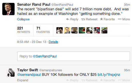 Some of the tweets were simply rehashes of Paul’s political philosophy; others were gripes of the “why is the Red Line always late” variety; a decent number were about the Fed, which you can look up on your own.