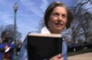 The encounter with Illinois Senator Jan Schakowsky lasted considerably longer, as the reporter followed her walking down the street. In response to repeated questioning (“Why won’t you speak out? Isn’t misogyny misogyny no matter which side does it?”), Schakowsky asked, “Rush Limbaugh?” The reporter clarified, continued questioning and then stated, “So, I guess the headline is you’re refusing to call what Bill Maher said about Sarah Palin offensive?”
