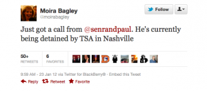 This morning, Sen. Rand Paul‘s communications director shared via Twitter that the Kentucky Senator has been detained by the TSA at a Nashville airport: