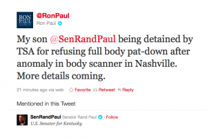 Update: MSNBC’s Kelly O’Donnell reported that the TSA is very specific with what it means by “detaining” individuals, and that it has so far admitted only to “holding” Sen. Paul and not allowing him to board his scheduled flight.