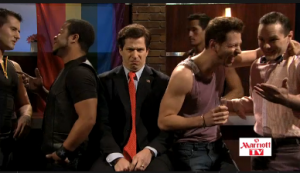 In case you missed Saturday Night Live over the weekend because you were out or sleeping or watching paint dry instead, we’ll get you up to speed: Last Saturday’s show included a sketch featuring GOP presidential hopeful Rick Santorum, who is not exactly the biggest advocate for same-sex marriage, or for homosexuality in general, tuning in to “Marriott TV’s GOP debate” from a gay bar.