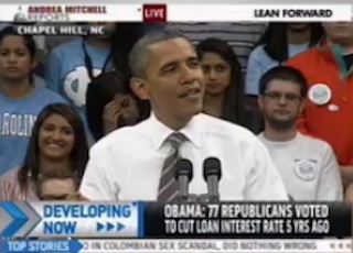 In the letter below, RNC Chairman Reince Priebus notes President Obama’s trips to three battleground states, Colorado, Iowa and North Carolina where he has delivered several speeches in recent weeks to students promoting his administration’s push to extend artificially low interest rates on student loans.