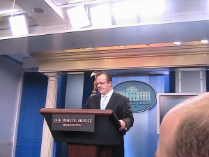 Update: Looks like maybe Gibbs has been reading his Twitter feed. We’ve just been informed that Deputy Press Secretary Bill Burton will conduct today’s briefing.