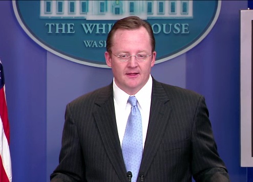 He then lightens the mood with a reference to Assistant Press Secretary Nick Shapiro, and his surfing ways. Here’s the video, from C-Span3:
