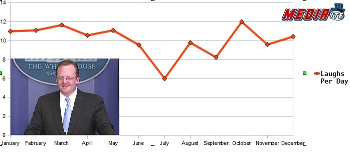 While the President’s lame duck accomplishments have provided some measure of late-year lift, 2010 has not shaped up to be an amusing year for the Obama administration. Despite all that, though, Press Secretary Robert Gibbs has managed to keep it light in the daily White House briefings, according to Mediaite’s research. Sure, we’ve kidded Politico in the past for its laughter-measuring ways, but why should that stop us from doing the exact same thing?