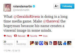 Fox News commentator Geraldo Rivera‘s appearance on Fox and Friends Friday morning has invited a blizzard of tweets from TV One host and former CNN contributor Roland Martin, who accused Rivera of ignoring the grassroots support for Trayvon Martin, in favor of playing the “media game” of turning leaders like Rev. Al Sharpton and Rev. Jesse Jackson into “racial bogeymen.”