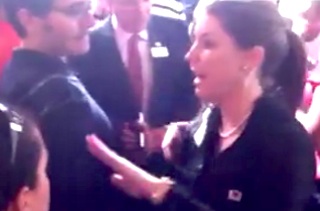 Things got ugly on Mitt Romney‘s campaign trail Wednesday when an overzealous Romney aide physically blocked reporters from the rope line after a speaking event in Florida. “We’re not going to do this,” Krista Warren shouted as she tried to prevent Romney’s embed reporters from asking questions of the presumptive Republican presidential nominee.