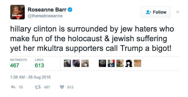 “Jewish mind control is the hardest to break out of,” Barr tweeted in 2012 — the same year she attempted to run for president.