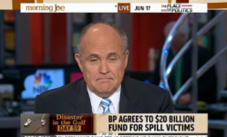 Suffice to say it’s going to take more than President Obama landing a $20 billion escrow fund from BP Oil to get the Republicans to say something nice about him. In fact, one thinks Obama might have to go out to northwest Pakistan and capture Osama bin Laden with his bare hands to muster a round of applause from the opposite aisle. Nevertheless, Joe Scarborough asked former New York Mayor Rudy Giuliani is he has anything nice to say following yesterday’s Rose Garden announcement. The answer is no. With his usual subtly, Giuliani described Obama’s actions thusly: