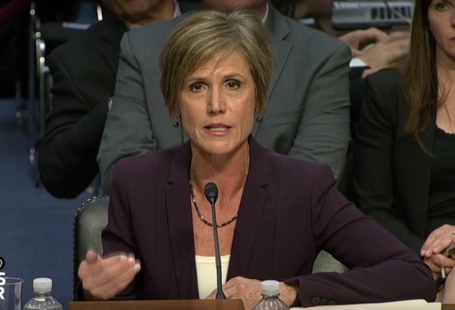 After announcing her entry to the social network on June 23 with a post was retweeted 43,000 times (not too shabby for a first effort) Yates has tweeted sparingly. In fact, she issued her third tweet ever on Wednesday. In it, she decried Donald Trump’s attack on the Department of Justice during a recent New York Times interview and accused the president of undermining a “bedrock principle of our democracy”