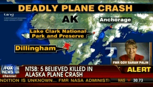 Tragic news broke this morning that a small airplane carrying former Senator Ted Stevens and former NASA Administrator Sean O’Keefe? had crashed in the wilds of Alaska. With very little news sources at the avail of various media outlets, Fox News turned to former Governor (and current Fox News analyst) Sarah Palin, who understandably demonstrated great expertise in her knowledge of Alaska and the airplane involved in the first on-air report from Alaska.