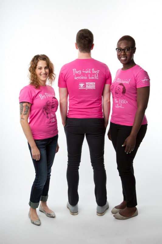 The shirts read “Hey, politicians! The 1950s called!” on the front, and “They want their sexism back!” on the back.
