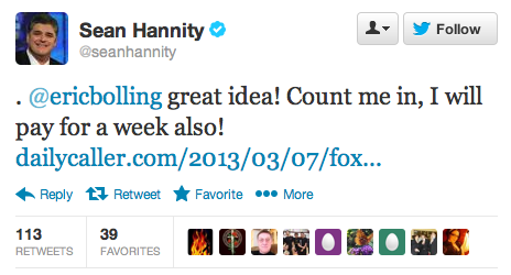 Shortly after Bolling made the statement on his show, Hannity tweeted his support.