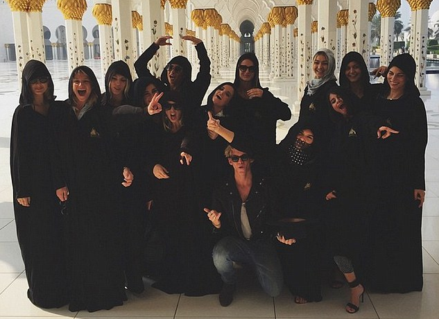 While visiting the Sheikh Zayed Grand Mosque in Abu Dhabi, Gomez, wearing what appears to be an abaya, took a photo of her showing off some sexy leg inside the mosque, which, according to mosque officials, is forbidden. The second photo shows Gomez and a bunch of other young celebrities, including Kendall Jenner, Gigi Hadid, and Cody Simpson, laughing and smiling. That is also forbidden.