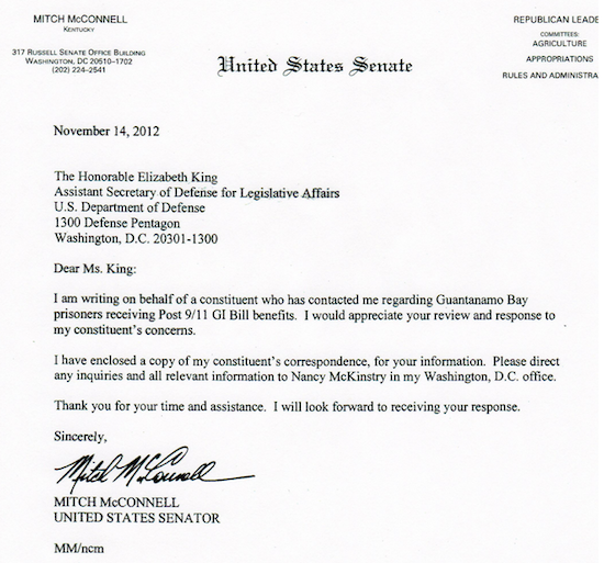 Sen. McConnell Bought Bogus Story About Guantanamo Detainees Getting GI Bill Benefits