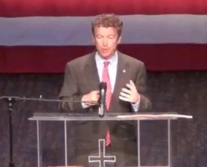 Senator Rand Paul spoke this weekend at the Faith and Freedom Coalition meeting in Iowa, and in the middle of his speech he got around to President Obama making news this week on gay marriage. Despite Paul’s libertarian views, he does not support gay marriage, but he does favor letting the states decide (which is essentially Obama’s position too). Paul noted Obama’s explanation that his views on the issue have been evolving for some time, and remarked, “Call me cynical, but I wasn’t sure his views on marriage could get any gayer.”