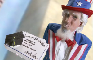 Campaign ads (especially the bad ones) are the highlight of every campaign season. And today, New Hampshire’s Republican candidate for Senate Jim Bender has released one for the annals of awful campaign videos. The ad features Uncle Sam gorging himself on various cakes shaped like banks, ambulances, personal checks, and college diplomas. Supposedly it’s meant to represent the federal government “feasting” on everything from businesses to kids’ college loan programs. Whatever it is, it’s brilliantly awful. It doesn’t quite beat Demon Sheep, but it’s definitely up there.