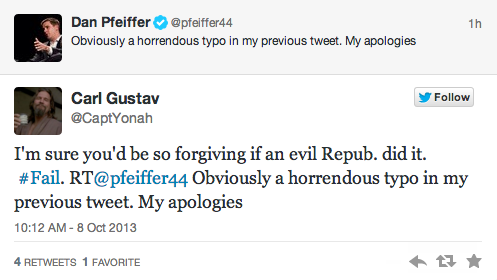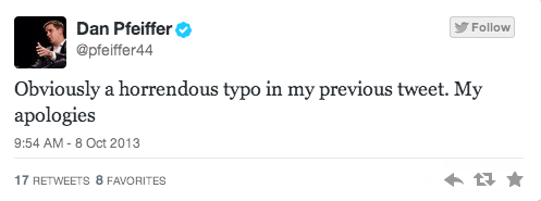 White House senior advisor Dan Pfeiffer apologized for a “horrendous” typo this morning on Twitter, after he sent out a message containing the n-word.