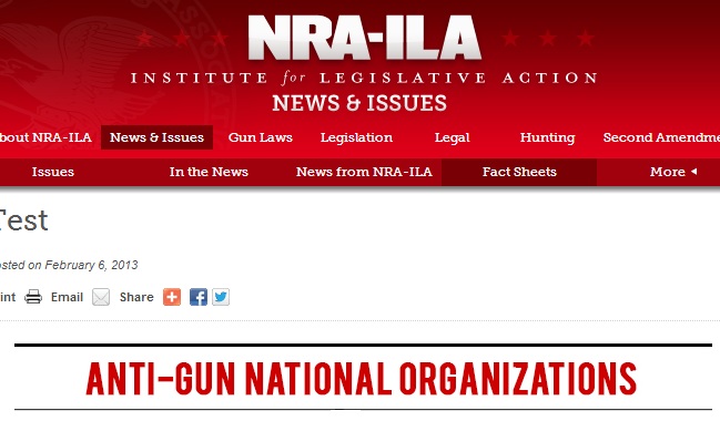 But MSNBC discovered another version of the list still buried deep within the NRA network on a page labeled “Test.” The URL also suggests the page could have been created as far back as 2010. However, the time-stamp is listed as Feb. 6, 2013.