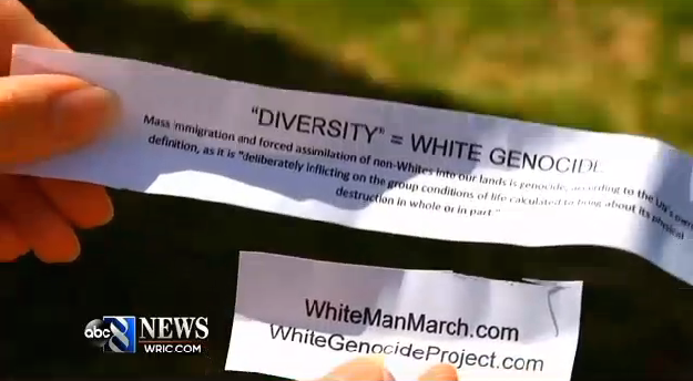 Parents in the West End of Virginia discovered, much to their horror, that amongst the Easter eggs planted for egg hunts, there were eggs that contained messages from a white supremacist group. One family discovered an egg with a little piece of paper “‘Diversity’ = White Genocide” at the top. Here’s what it read: