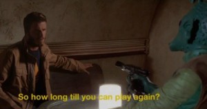 So, I’m peripherally watching the World Cup, wondering to myself for the hundred-and-eighth time if one of those annoying World Cup horns (they’re called vuvuzela, latin for “Does this bug you?”) will actually fit up a soccer fan’s ass sideways, when I hear the goofily melodic strains of the Mos Eisley Cantina Band. I turn, and am confronted with the worst perversion of the Star Wars franchise since Bea Arthur sang there in the Star Wars Holiday Special. Actually, that was kinda awesome.