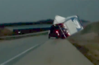According to CNN, eight tornadoes were reported in Oklahoma, Kansas, Missouri, Illinois, and Iowa, with an enormous wedge tornado ripping through Rochelle and Fairdale, Il, destroying both of the the rural, sparsely-populated towns. Damage from the storm was limited, but Live Storm Media witnessed its immense power when a gust knocked over a standing flatbed truck: