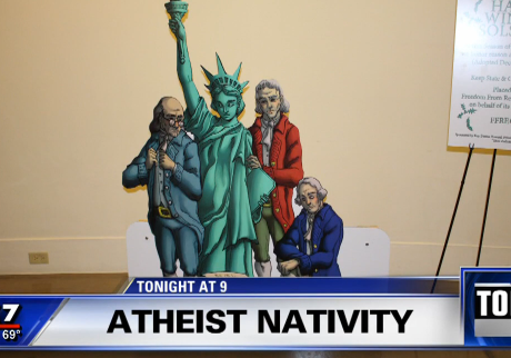 In a statement, FFRF Co-President Annie Laurie Gaylor said it was ironic the “very document that our display was honoring is what protects” the secular nativity scene. “Government officials cannot censor our speech because they disagree with our secular message,” she wrote.