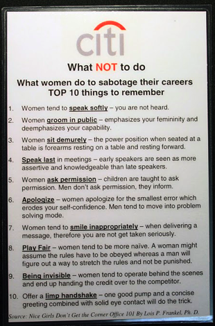 As you can imagine, this very often happens in reverse. Plenty of women are never given a second shot because they didn’t catch a sports metaphor, didn’t understand something that a man finds blatantly obvious. And here is a fantastic post from Farrah Bostic about that.
