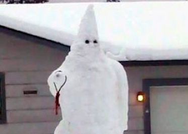 Mark Eliseuson is already known in his town of Hayden, Idaho for flying controversial flags that espouse white power. But his latest approach to getting the wrong type of attention might be the most passive aggressive racist ploy ever. He and a friend allegedly built a snowman that clearly and specifically looks like a member of the Ku Klux Klan…complete with noose. Come on people. What’s the matter with you? (H/T Gawker)