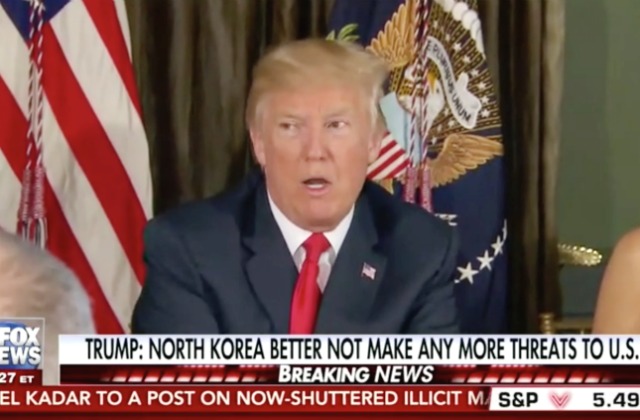 “North Korea best not make any more threats to the United States,” Trump said. “They will be met with fire and fury like the world has never seen.”