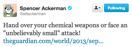 The White House has had to balance on the world’s least stable tightrope in order to satisfy two camps on Syria: anti-war liberals and libertarians, and hawks from both parties. For the most part, the Obama administration has worked really hard to assure the former, at the expense of the support of the latter. Case in point, Secretary of State John Kerry promised today that any action taken in Syria would be “unbelievably small.” This ended up earning Kerry quite a bit of ire today, including from Republicans gung-ho about a military response.