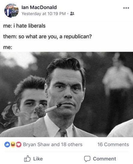 When MacDonald presumabely learned that his affinity for the neo-Nazi Rockwell was being publicized on Twitter, he posted the following on Facebook in response: “Now that I know every one of my posts is a swamp target, just want to say, hey! How ya doing? Glad I’m so important that I take up space in your head.”