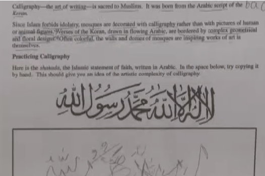 The assignment by Riverheads High School teacher Cheryl LaPorte asked students to copy the shahada, a Muslim statement of faith that translates as “there is no god but Allah, and Muhammad is the messenger of Allah.”