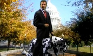 To his credit, Freilich admits that he hasn’t spent any special interest money on his campaign, which explains the poor quality of the video. But that’s about as far as he gets into why he’d make a good senator. For the rest of the video he pretty much just panders to his Vermonter demographic, chugging a tin can of maple syrup (had to fact check that one, because it looks like a tin can of motor oil), and riding a cow – people from Vermont do that, right?
