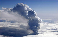 British civil aviation authorities said on Thursday they would close the country’s airspace at noon to shield aircraft from a plume of ash caused by an erupting volcano in Iceland. The cloud drifted south overnight, forcing the cancellation of hundreds of flights in a wide arc from Ireland to Norway…The move effectively grounded all flights in Britain from 11:00 a.m. GMT (6:00 a.m. EDT) and affected the estimated 6,000 flights using British airspace everyday, aviation experts said. The impact was likely to be among the most severe in many years. After the attacks of Sept. 11, 2001, transatlantic flights were suspended and there have since been huge disruptions to British air travel caused by terrorism alerts.