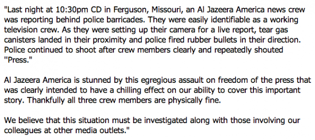 WATCH: Ferguson SWAT Team Tear Gasses Al Jazeera Crew