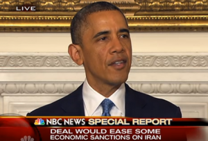 Following a historic deal to limit Iran’s nuclear program, President Obama delivered remarks on the deal, calling it an “important first step towards a comprehensive solution.” He made it clear the U.S. was drawing a line in the sand, saying, “In these negotiations, nothing will be agreed to unless everything is agreed to.”