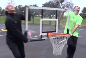 If you think you’re pretty good at basketball, watch these guys and hang your head in shame. The online stars of Dude Perfect, a group of Texas A&M alumni, attempted a stunt in which they dropped a basketball from an unbelievable height and moved around a basketball net to try and position it so the ball would whoosh right through and…