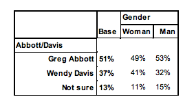 Davis came to prominence after a 13-hour filibuster against a last-minute abortion bill last summer, and has campaigned as a champion for women’s health causes and pay equity. But according to PPP Abbott has an 8-point lead in favorability among women, up two points from last November: