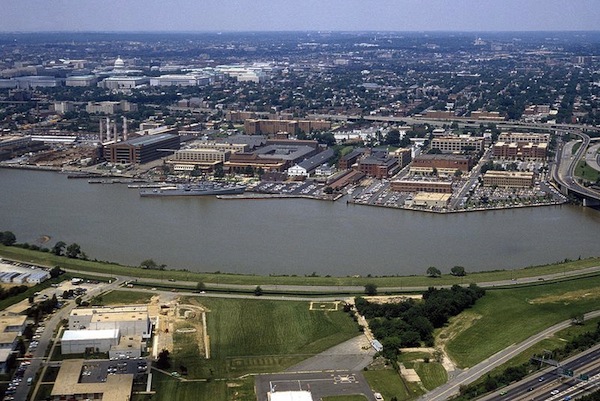 The oldest shore establishment of the U.S. Navy, the former shipyard and ordnance plant is now the headquarters for the Naval Sea Systems Command, Naval Historical Center, the Department of Naval History, the U.S. Navy Judge Advocate General’s Corps, Naval Reactors, Marine Corps Institute and the United States Navy Band. The complex is located in southeastern Washington, D.C. with M St. SE as its northern border and the Anacostia River to the south. Tourists can visit the National Museum of the U.S. Navy, located within the Navy Yard.