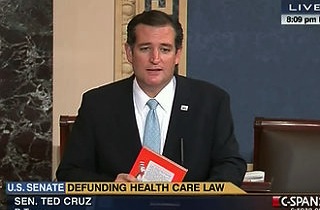 Senator Ted Cruz (R-TX) is filibustering a bill he wants passed, except it’s not really a filibuster, and Republicans are more pissed off at him than Democrats, and there’s no chance of him stopping ObamaCare even if he reads all the Dr. Seuss in the world. So what’s Cruz’s play here?