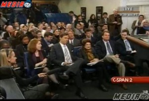 There was a funny bit of back-and-forth at yesterday’s White House press briefing in which Press Secretary Robert Gibbs accused the press corps of having called the President “overexposed,” resulting in some crossfire and several straw polls that indicated, among other things, that I’m one of only 3  White House reporters who want to win the lottery. Beneath the jocularity, however, lies a legitimate media criticism.