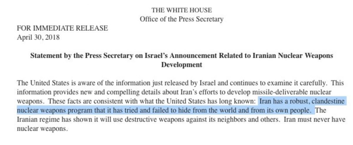 They’ve wordlessly edited the press release on their website from “Iran has a nuclear weapons program” to “Iran had a nuclear weapons program.” Quite big difference actually! https://t.co/Mduah6FKAi pic.twitter.com/MgNZb2F2Xm