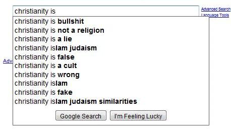 Here’s a Reddit thread started January 8 that gained a great deal of attention. It shows how when you enter “Christianity Is…” Google automatically shows you some possible search results, many which are not very favorable:
