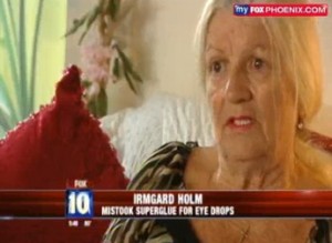 Meet Phoenix resident Irmgard Holm. She had cataract surgery last year and needs medicated eye drops. For some reason, she keeps a small squeeze bottle of superglue next to the eye drops.