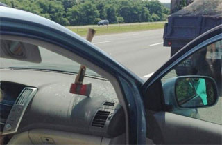 The man whose car was struck was obeying the speed limit, driving about 65 mph. If he had been speeding, the increased velocity of his car would have increased the power of the axe’s impact, meaning it could very well have gone through the glass and injured his passenger. Please remember those lessons.