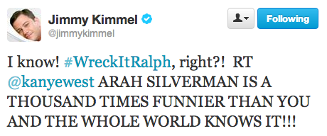 Kimmel didn’t descend down to West’s level (which, frankly, is pretty low to begin with), instead responding with some tongue-in-cheek tweets of his own.