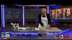 Glenn Beck was all about American Pie (the good old America kind, not the movie kind). Literally and metaphorically. I know I’ve speculated many times that Beck may be the next Oprah but tonight he appeared to be gunning for Martha Stewart land. In an effort to explain U.S. foreign aid, personal financial responsibility, and charity, Glenn Beck put on an apron and cut up a lot of pies. I happen to be a big fan of Beck’s habit of using visual aids and Baker Beck was in top form tonight.