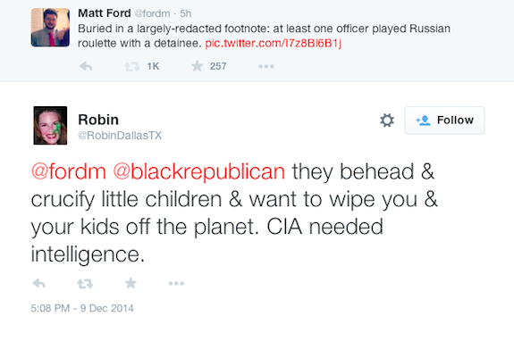 Among the most vitriolic of the responses to Senate Intelligence Committee report on the CIA’s use of torture under the Bush administration has been that the techniques were justified by virtue of the fact that they were performed on those who would do much worse to us. Sometimes this was communicated with a simple “they”:
